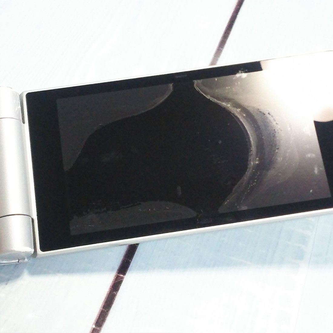 【液晶の状態】ボタン痕と内部剥がれ、色むらがみられます。