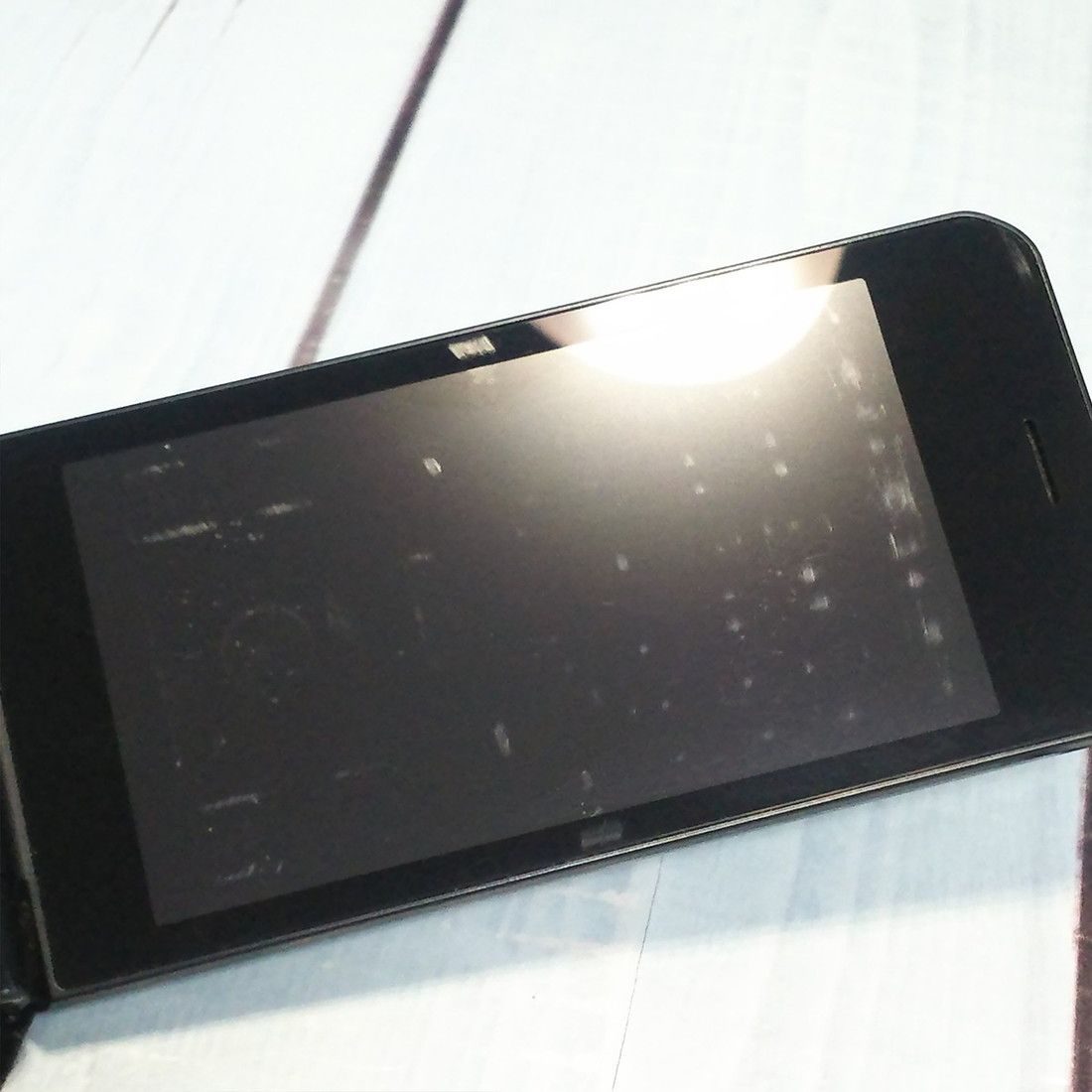 【液晶の状態】擦り傷とボタン痕、うっすらと赤みがかった色むらがみられますが、液晶ON時にあまりにも目立つ傷や汚れはありません。