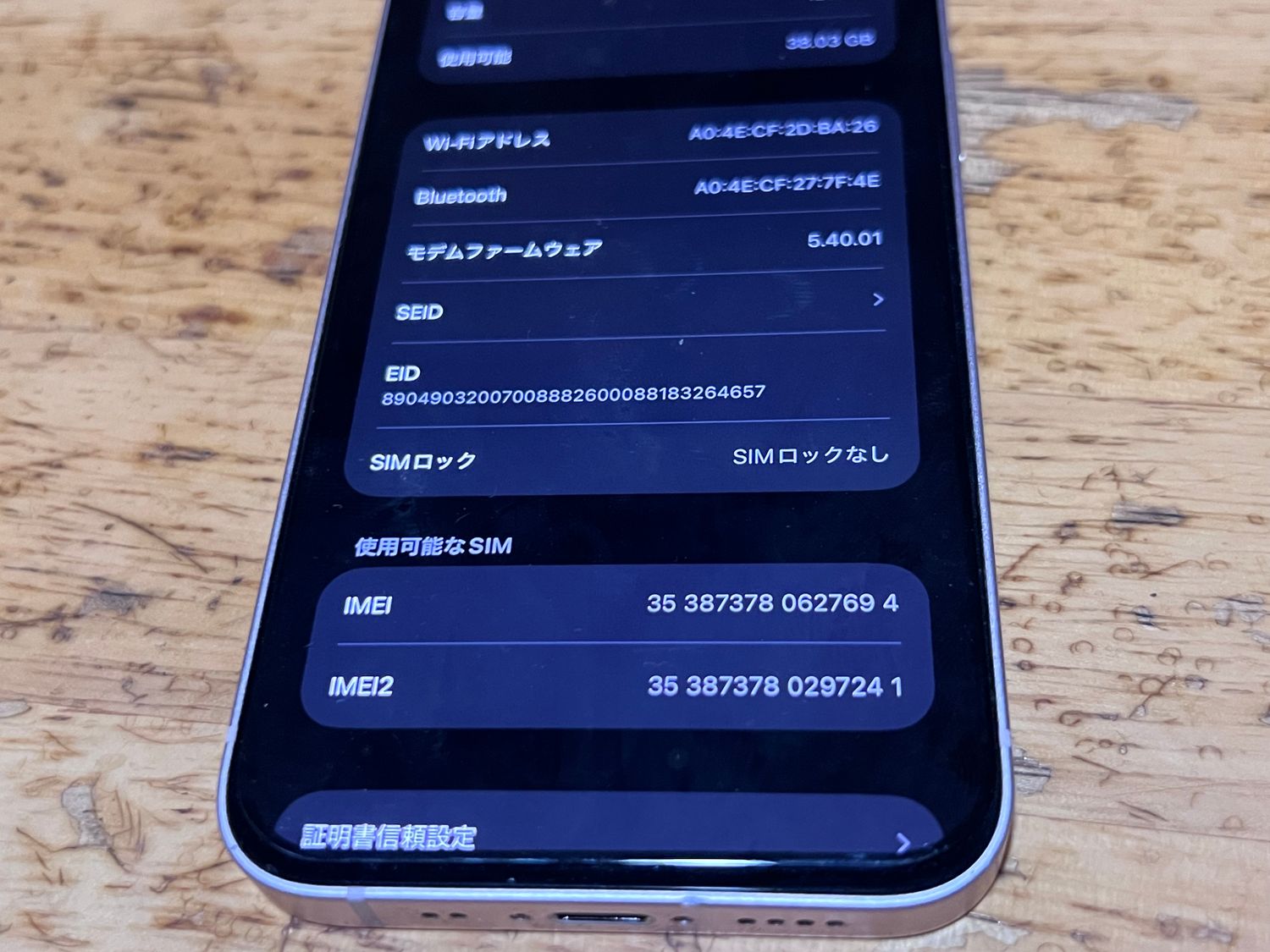 | IMEI番号 | 353873780627694 |