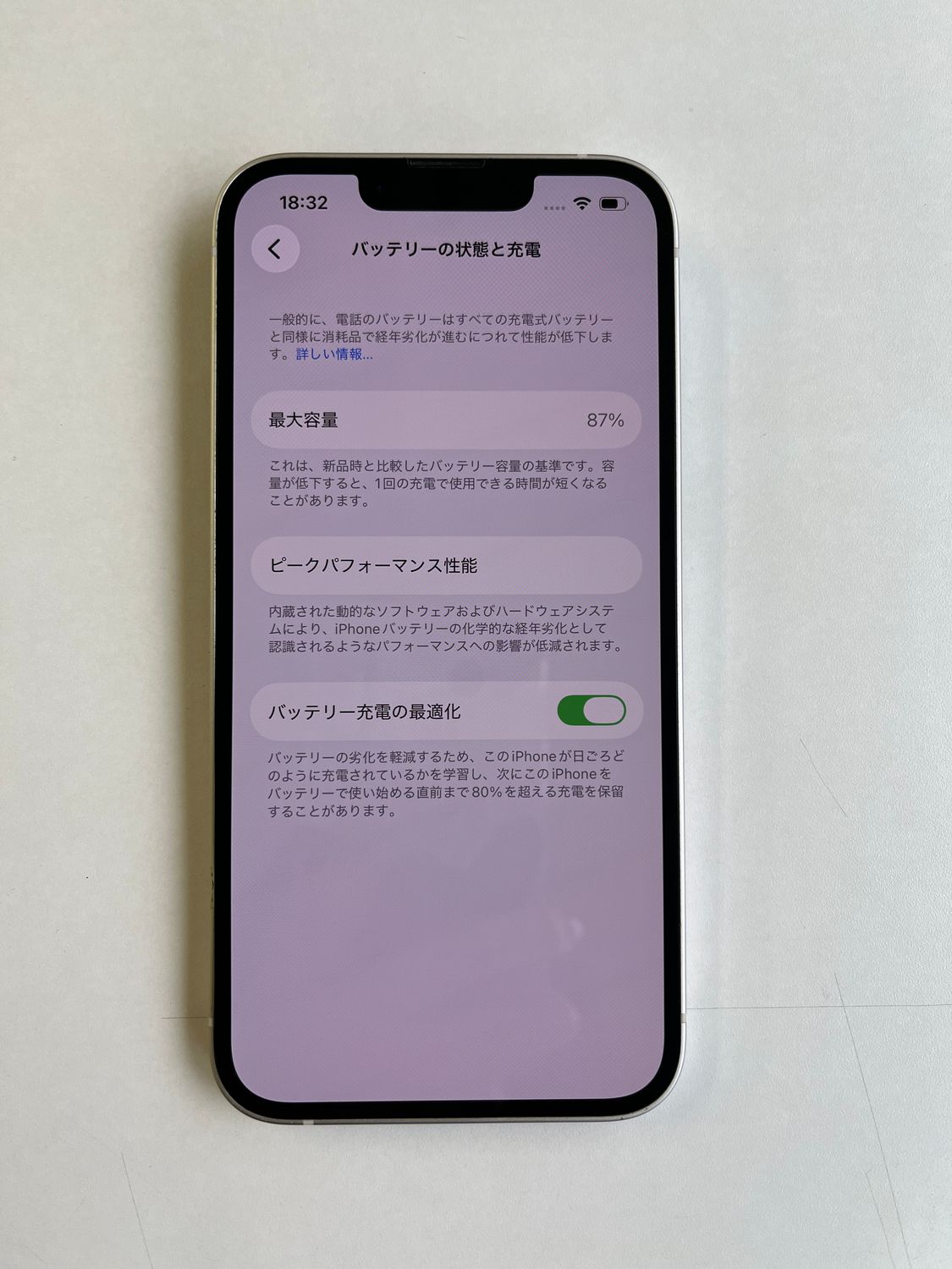 バッテリー最大容量: 87%