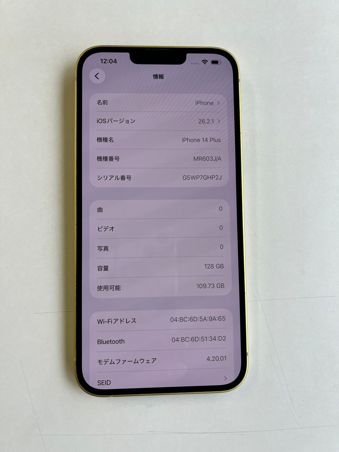 iPhone 14 Plus 128GB 型番:MR603J/A の中古品を出品いたします。