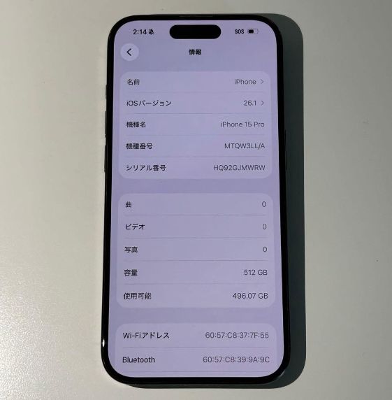 「」機種:iPhone 15 Pro 512GB。
