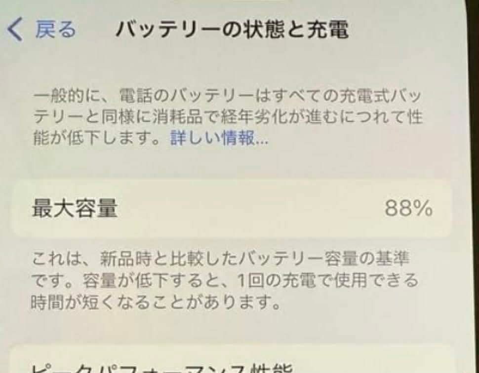 〇バッテリー:最大容量88%