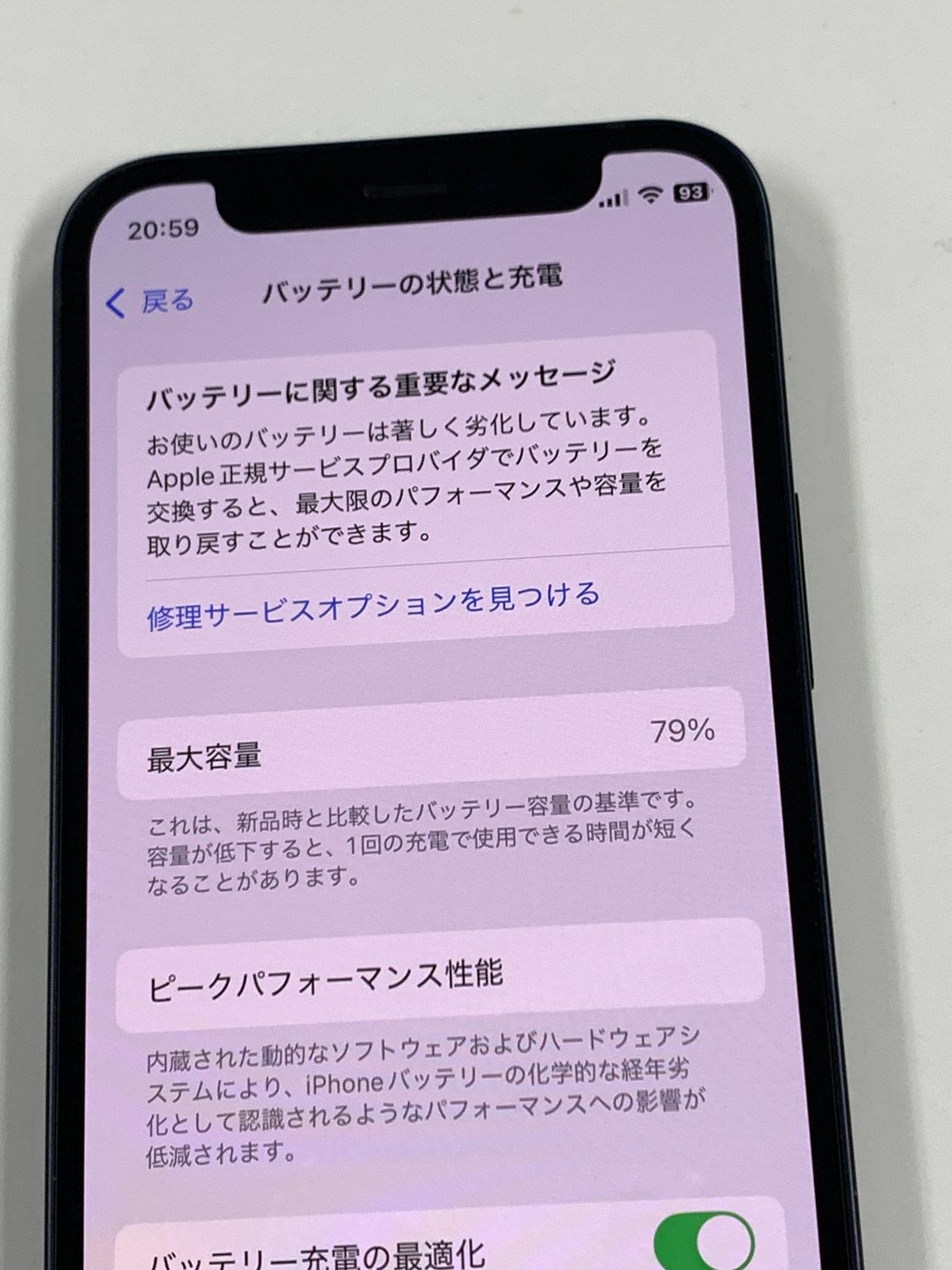 バッテリー最大容量表示:79%