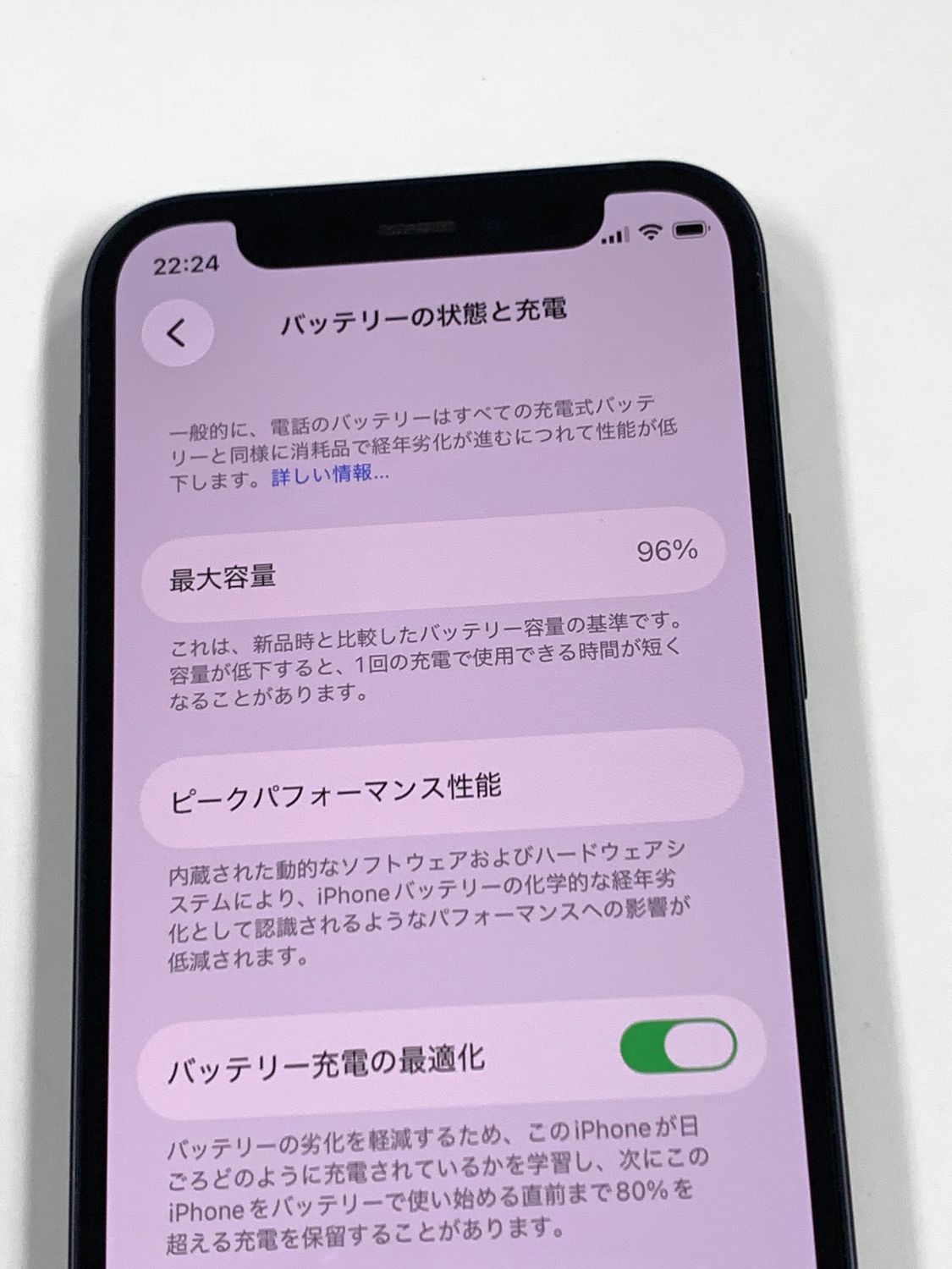 バッテリー最大容量表示:96%