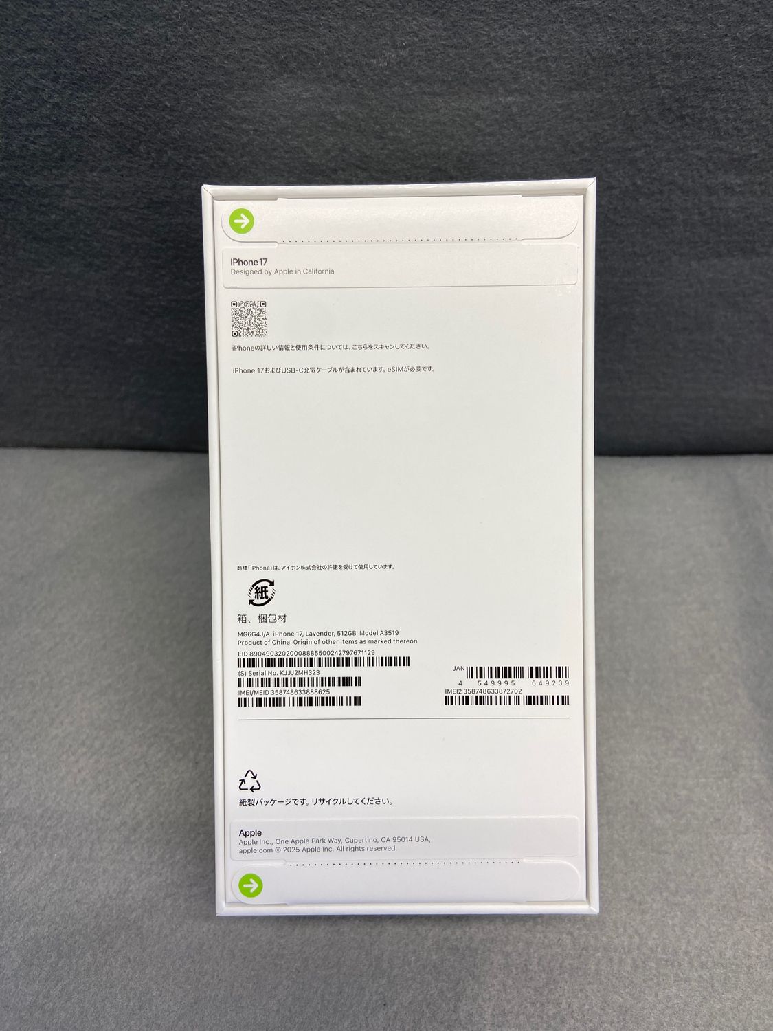 今日発送 新品未開封 Appleストア版 SIMフリー iPhone17 512GB ラベンダー色