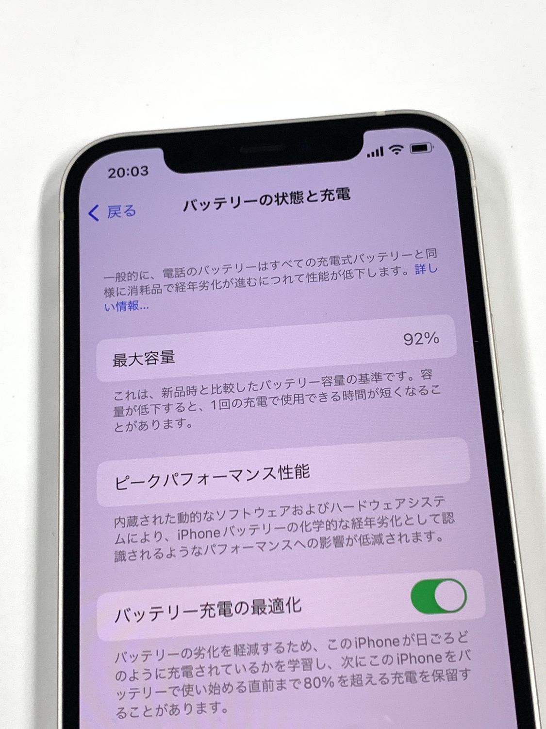 バッテリー最大容量表示:92%