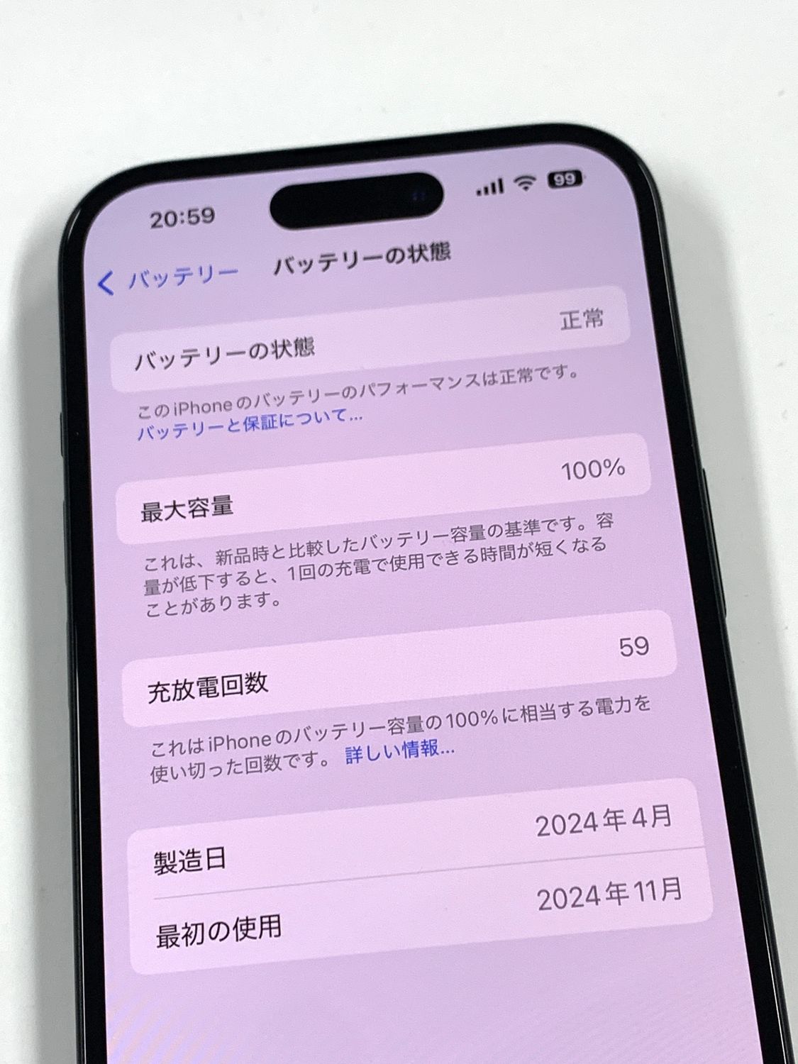 バッテリー最大容量表示:100%
