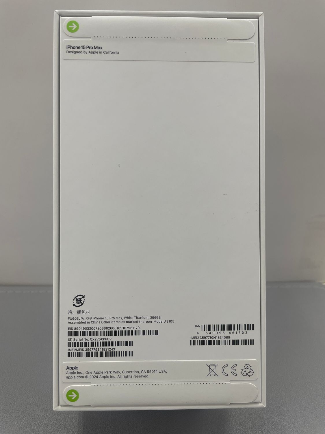 アップル版 未開封 iPhone 15ProMax 256gb ホアイトチタニウム