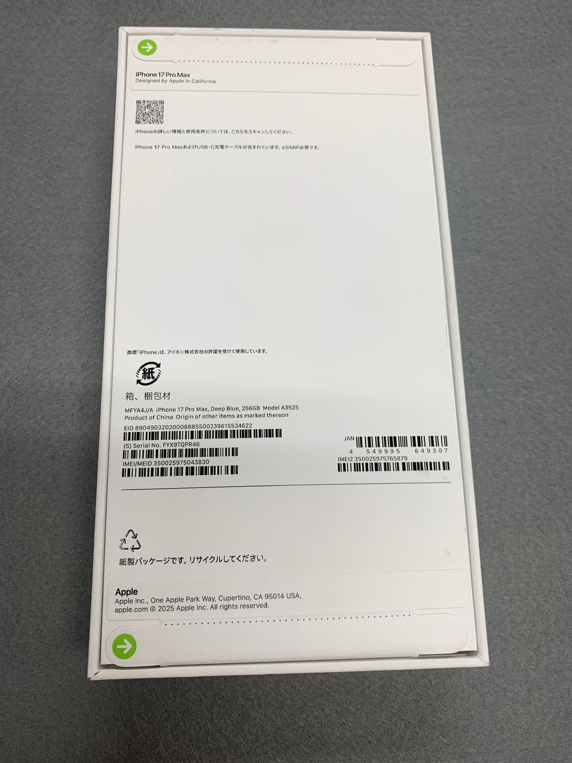 新品未開封 国内版 simフリー iPhone17 Pro max 256GB