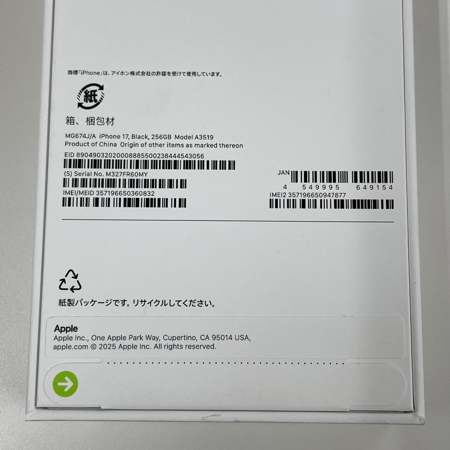 ■製造番号 357196650360832