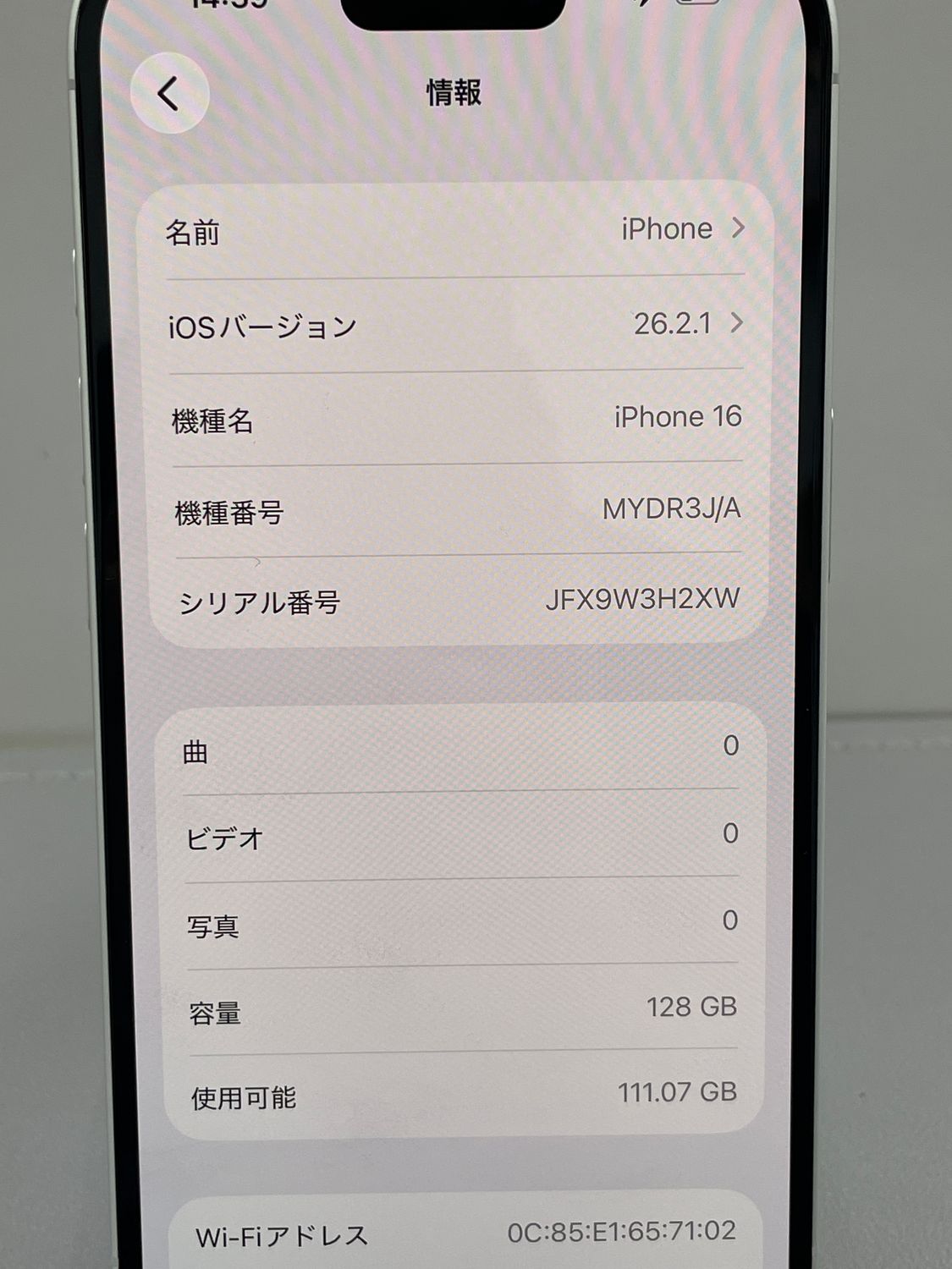 | 機種名 | iPhone16 |