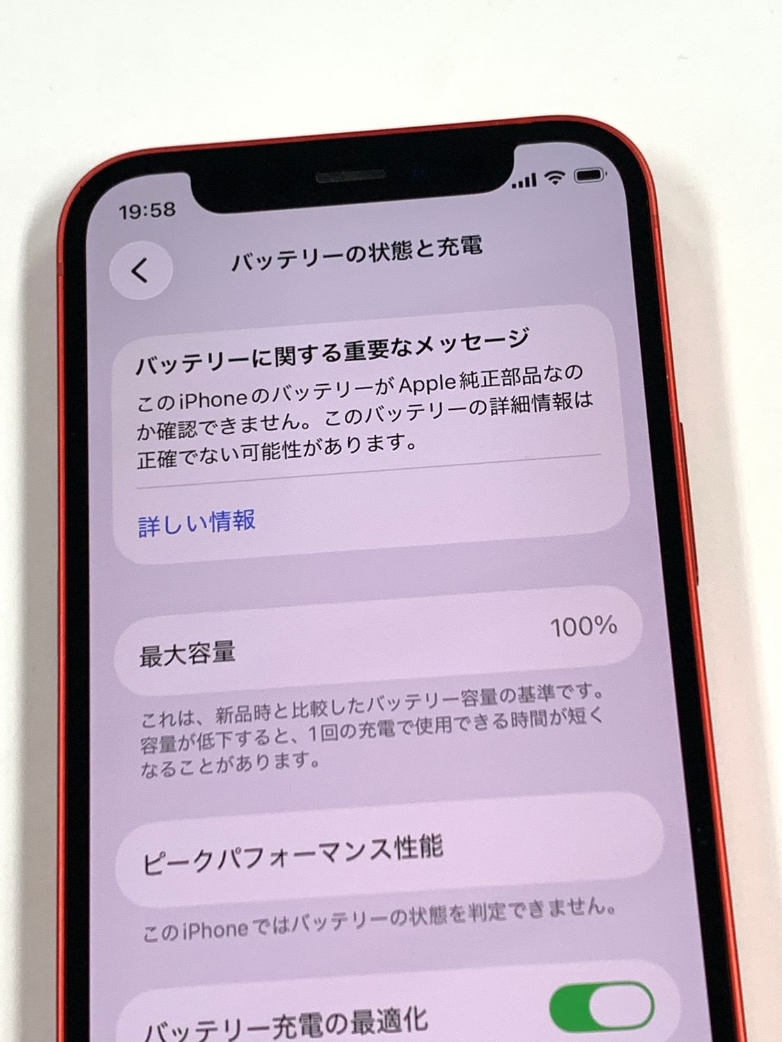 バッテリー最大容量表示:100%