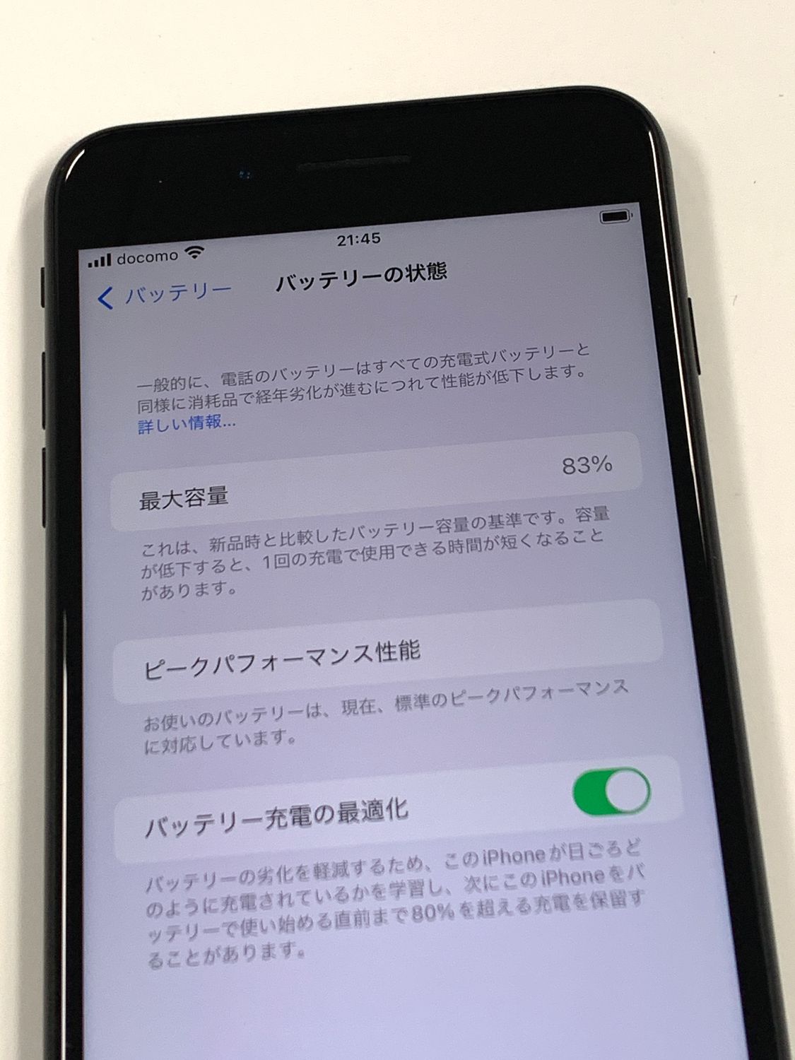 バッテリー最大容量表示:83%