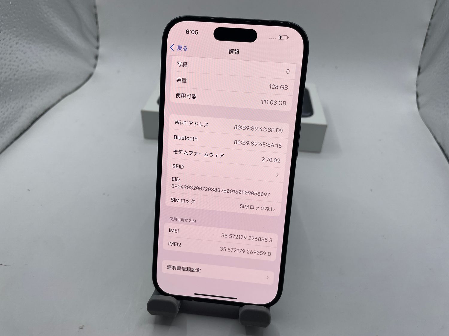 | IMEI番号 | 3557217922353 |