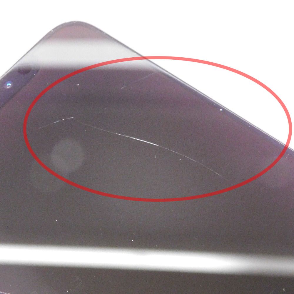 画面に線傷が散見します。(画像赤〇内に撮影できる程度の傷を撮影しています。)