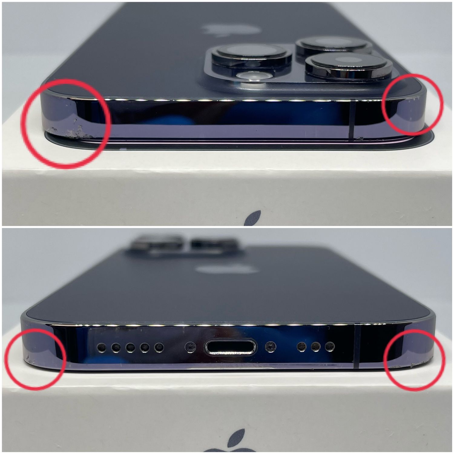 側面→【C】左下/左上/右上に目立つ欠けあり・側面全体に使用感・小傷あり