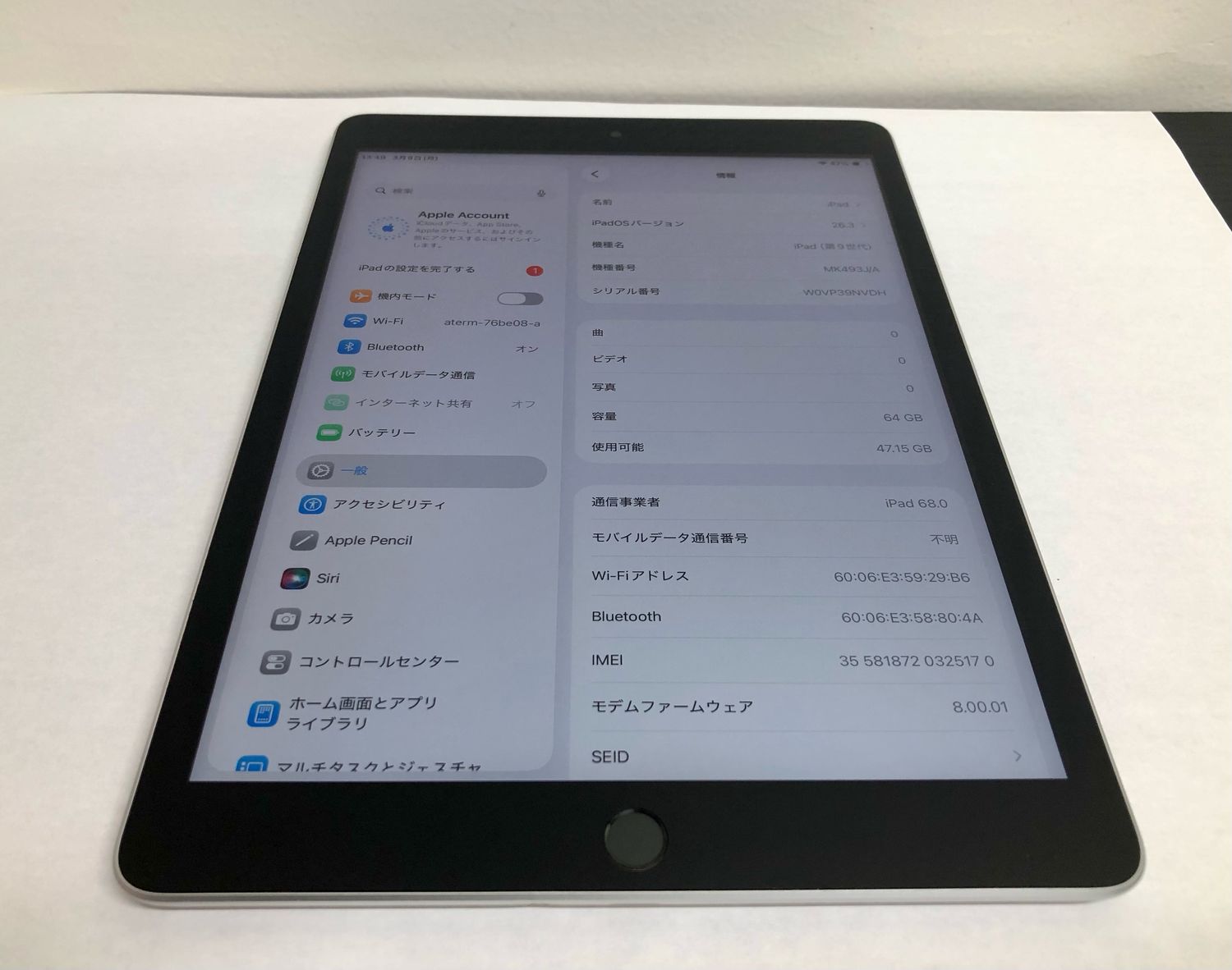 | 機種名 | iPad(第9世代) |