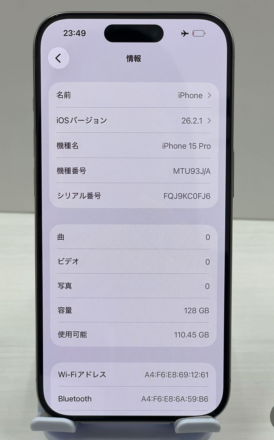 | 機種名 | iPhone15 Pro |