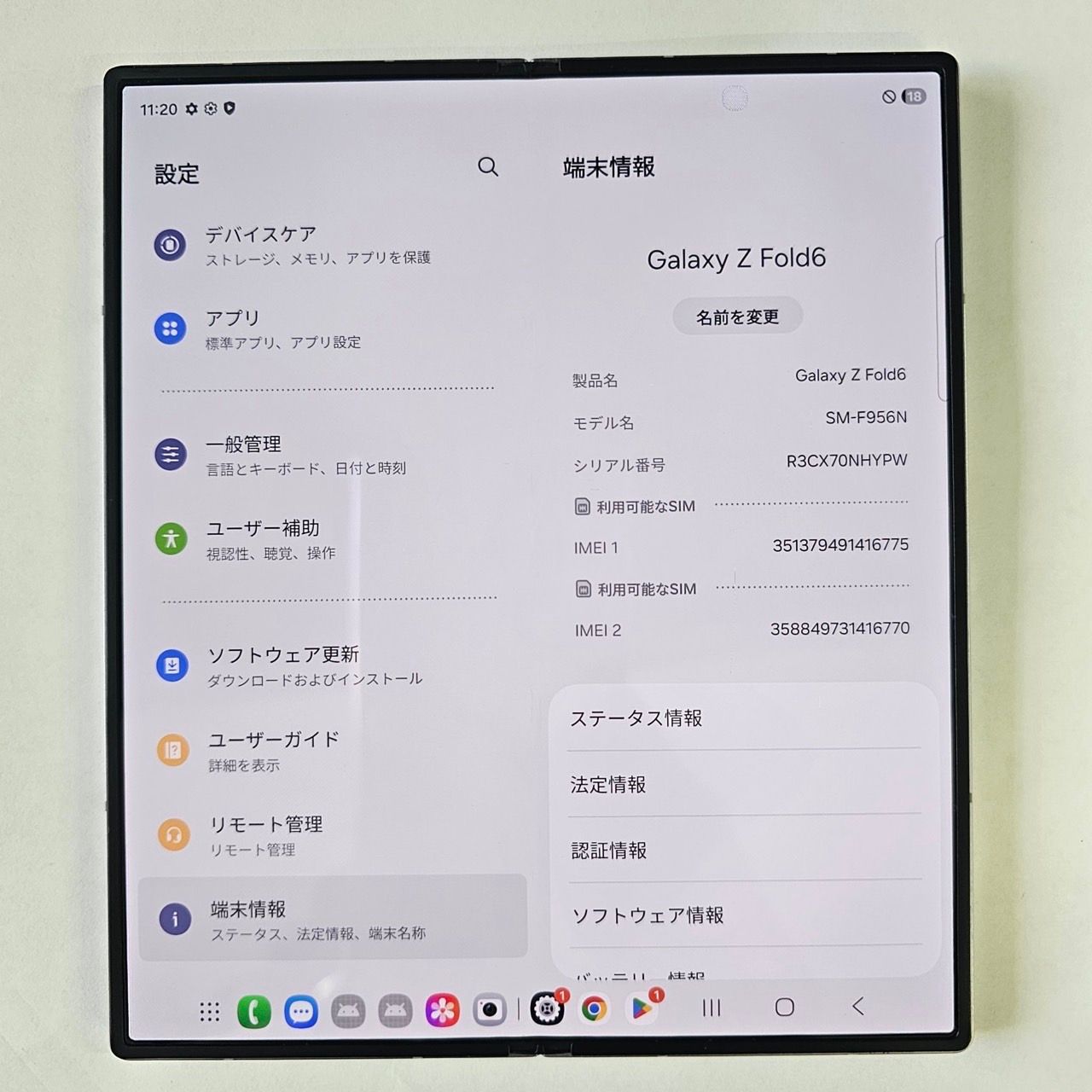 | 機種名 | Galaxy Z Fold6 |