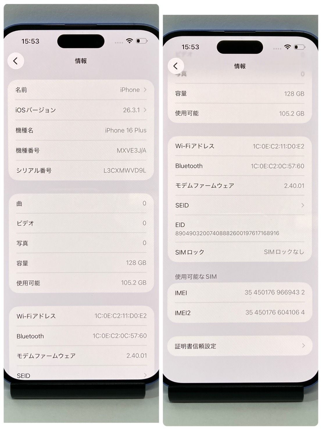 | 機種名 | iPhone16 Plus |