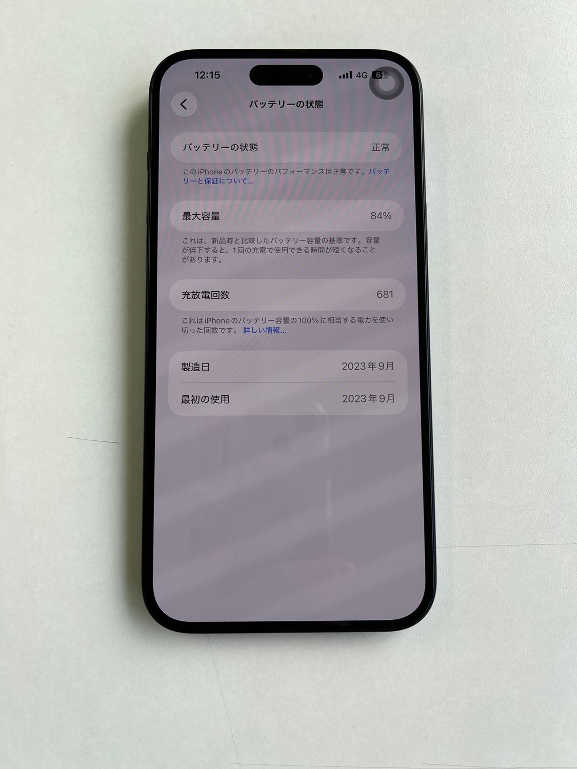 バッテリー最大容量: 84%