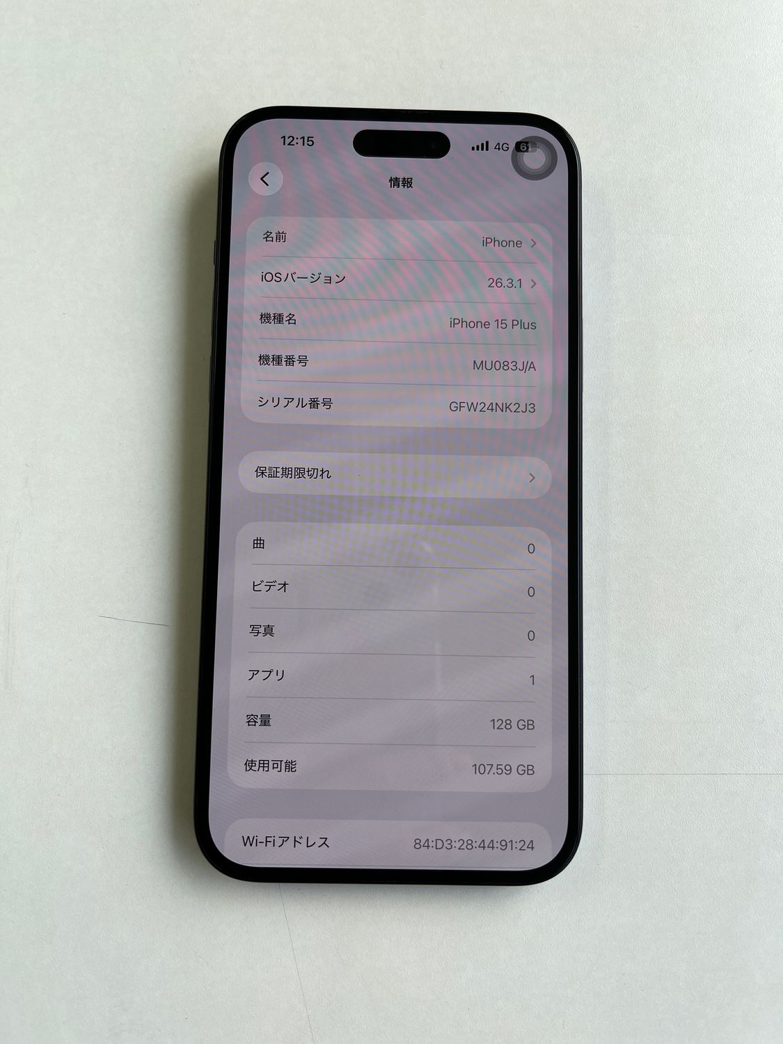 | 機種名 | iPhone15 Plus |