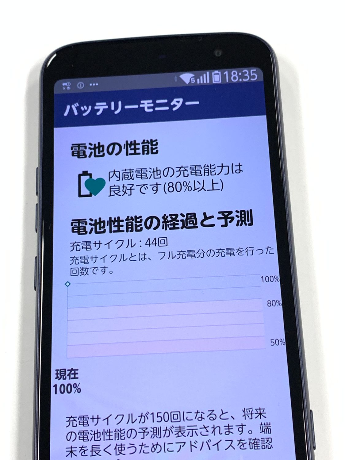 充放電回数:44回 バッテリー最大容量100%