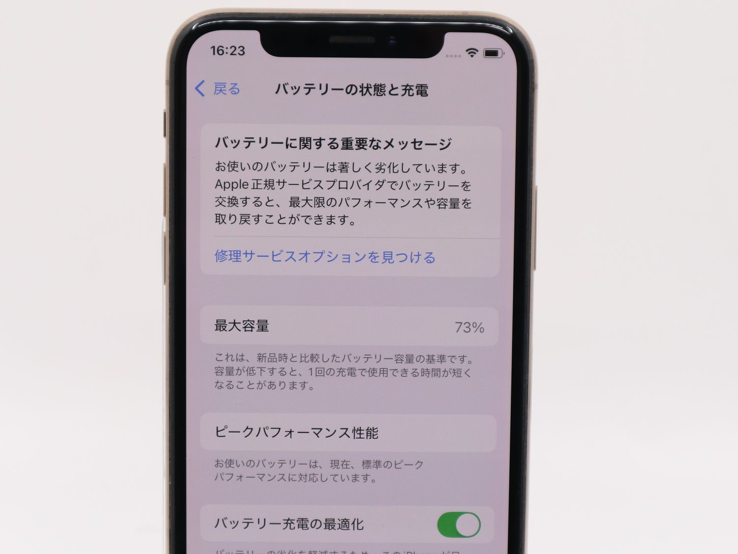 ■バッテリー状態:最大容量100%中73%