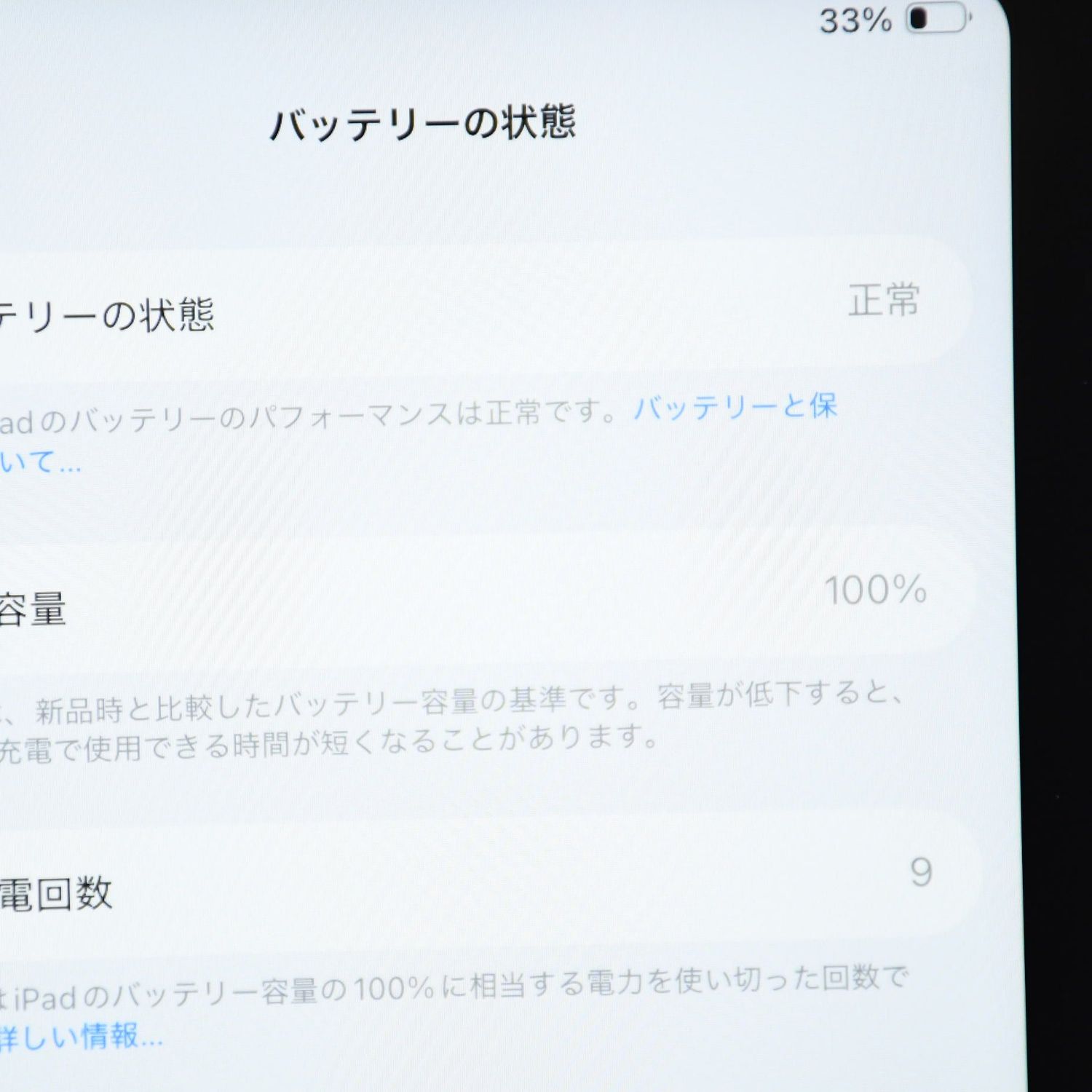 (新品時と比較したバッテリー容量の基)