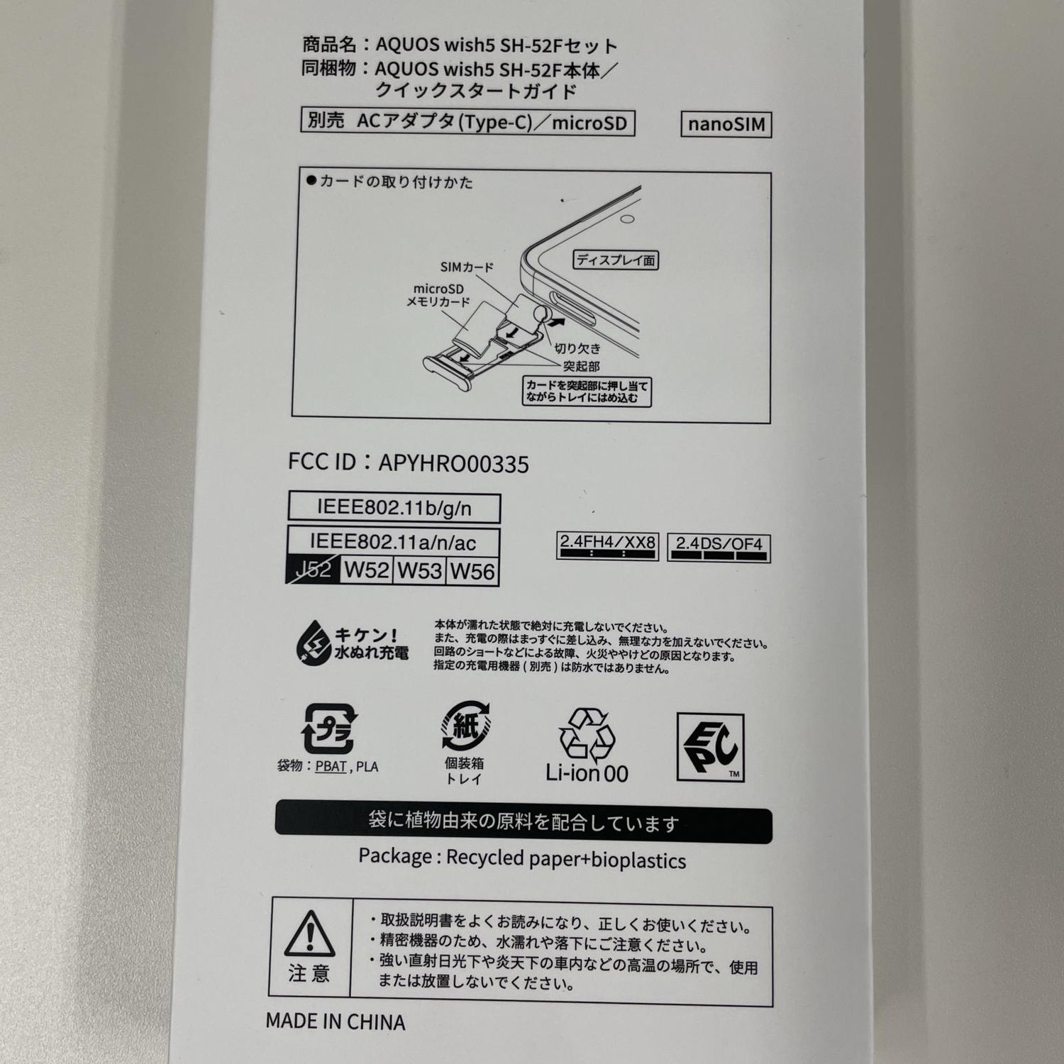 | 機種名 | AQUOS wish5 SH-52F |
