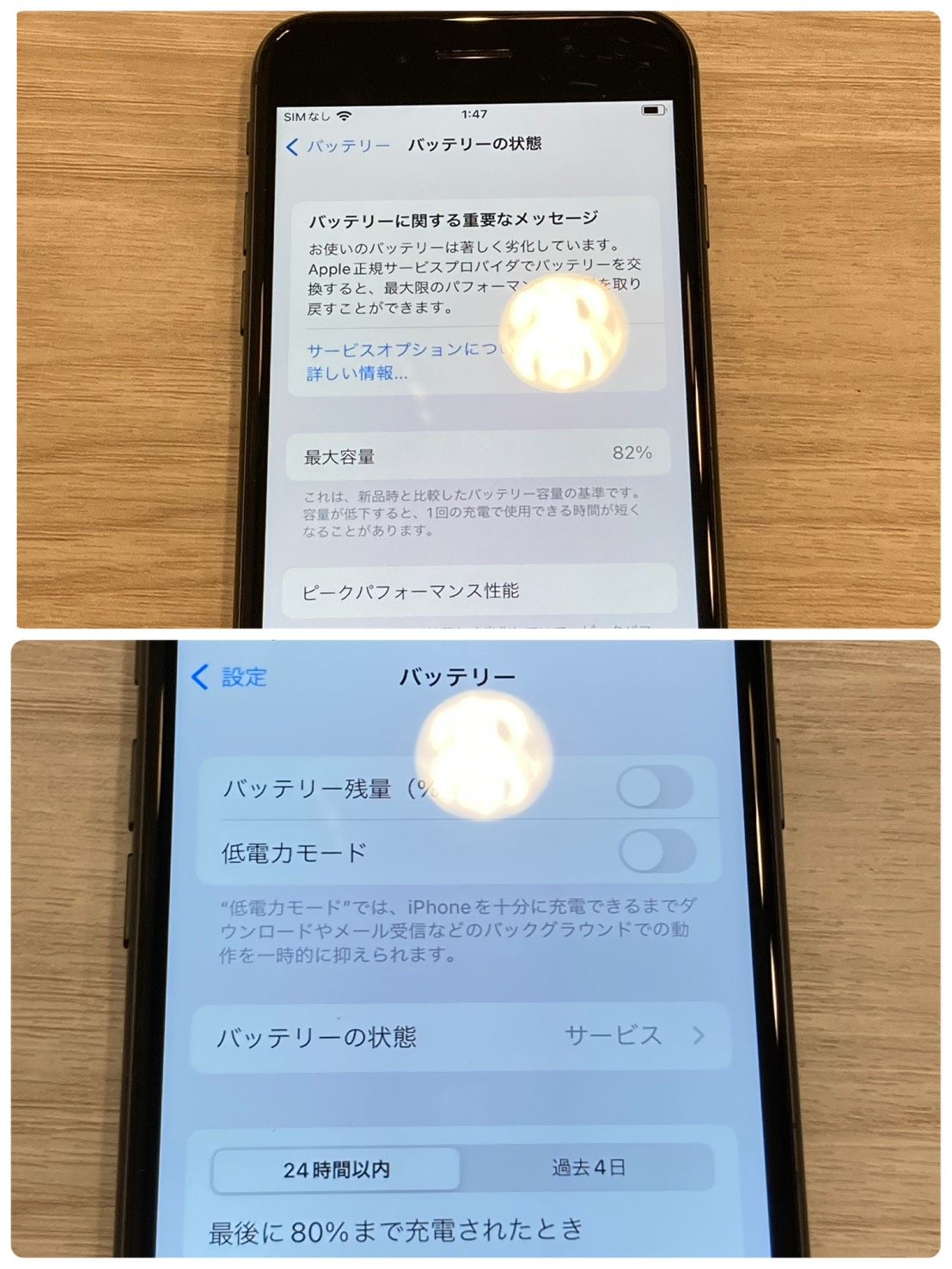 【バッテリーの状態】サービス(82%)(3/16時点) 劣化修理推奨メッセージあり