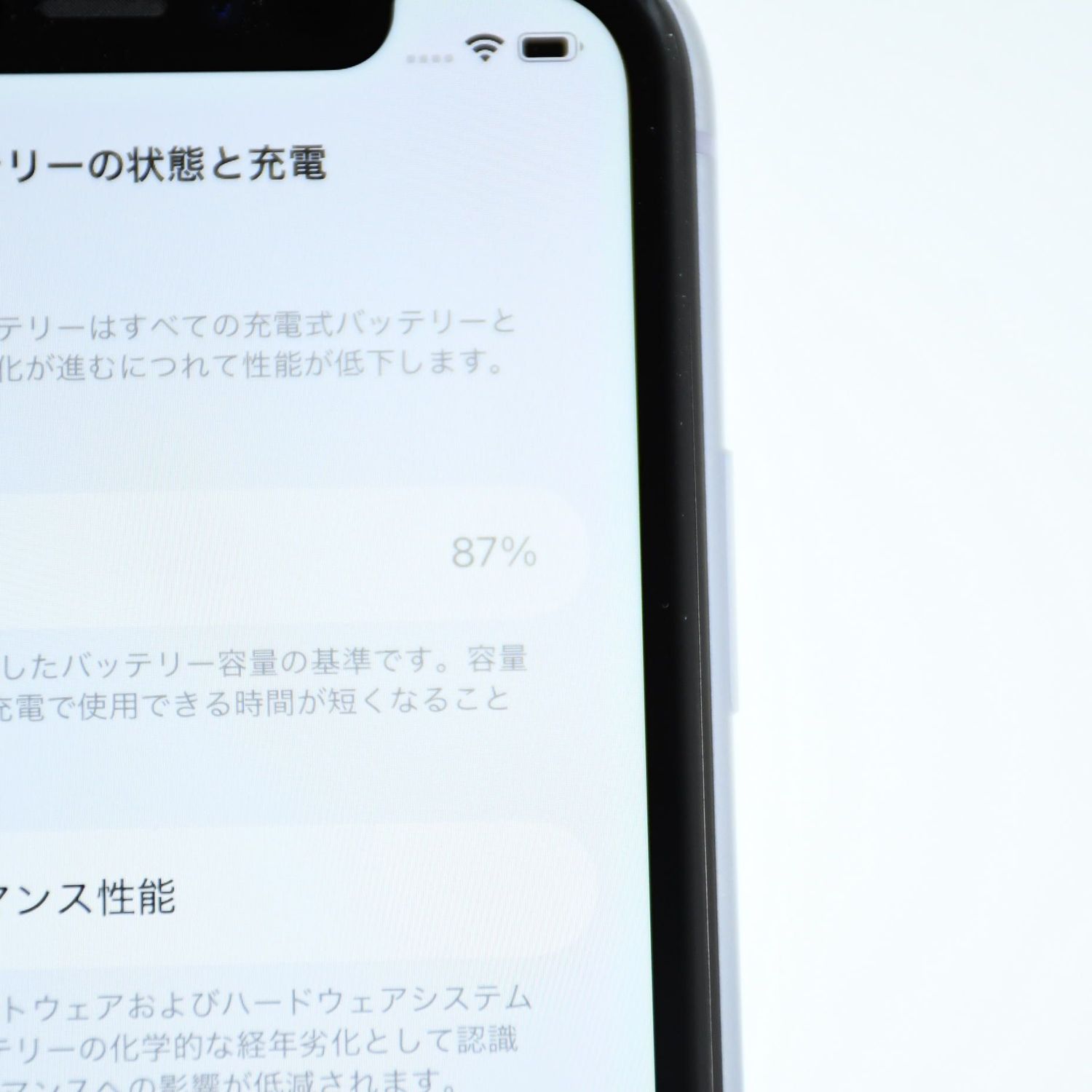 バッテリー最大容量 :100%中87%