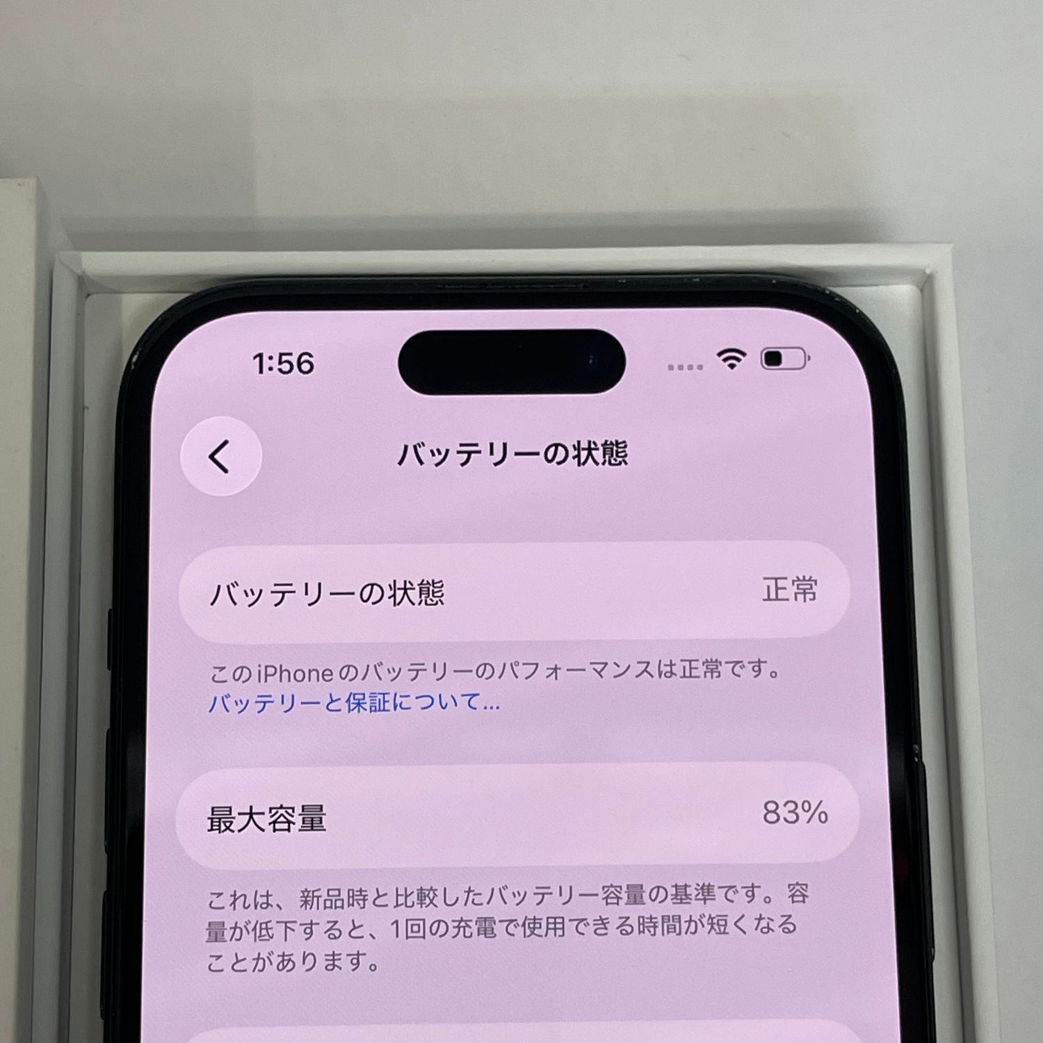 検品時のバッテリーの最大容量は83%、softbank版のSIMフリー端末になります。