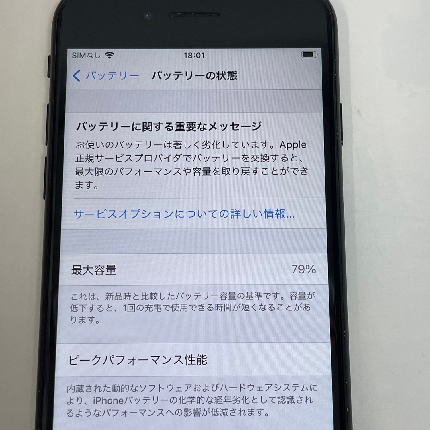 検品時のバッテリーの最大容量は79%、mysoftbankにてSIMロック解除済みです。