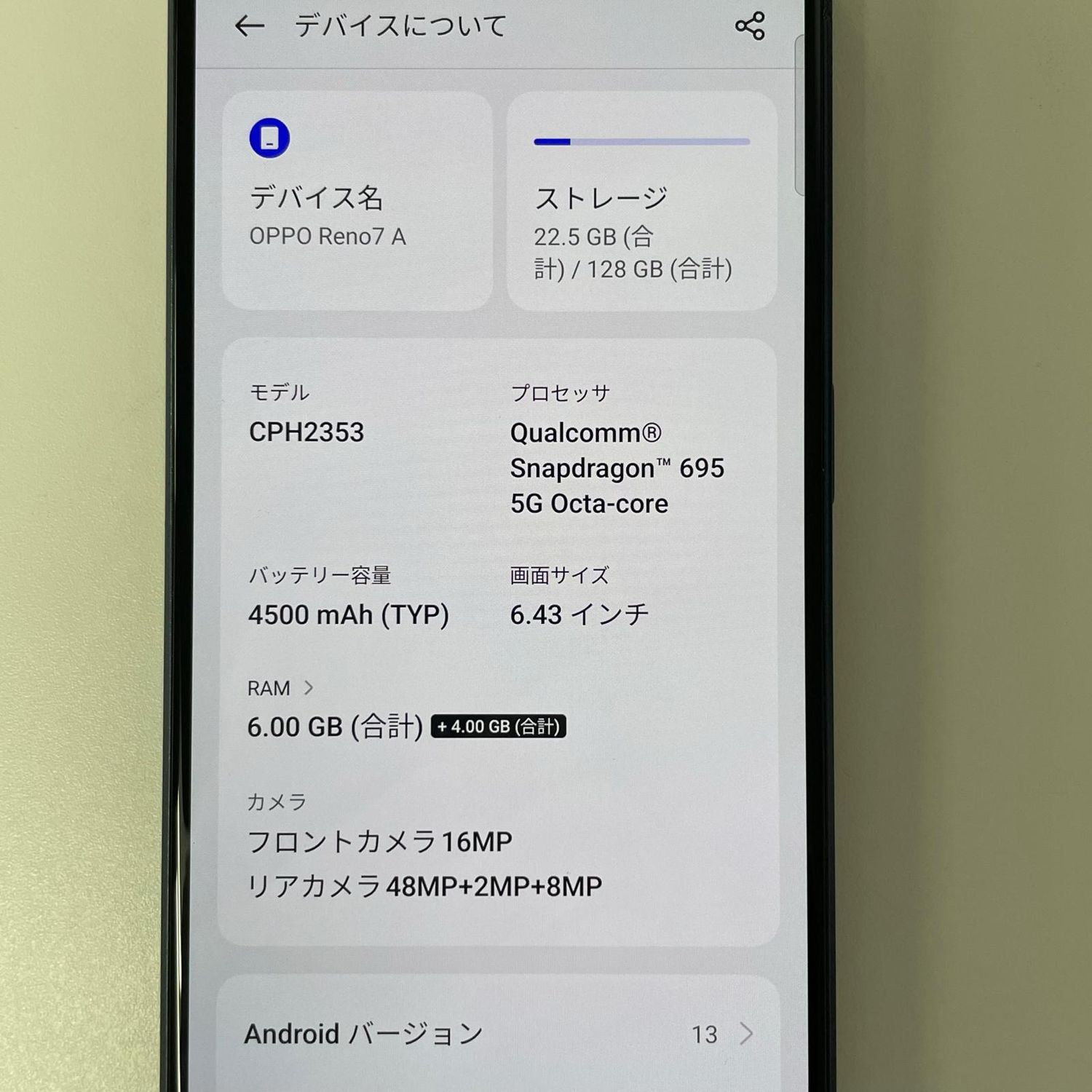 | 機種名 | OPPO Reno7 A |
