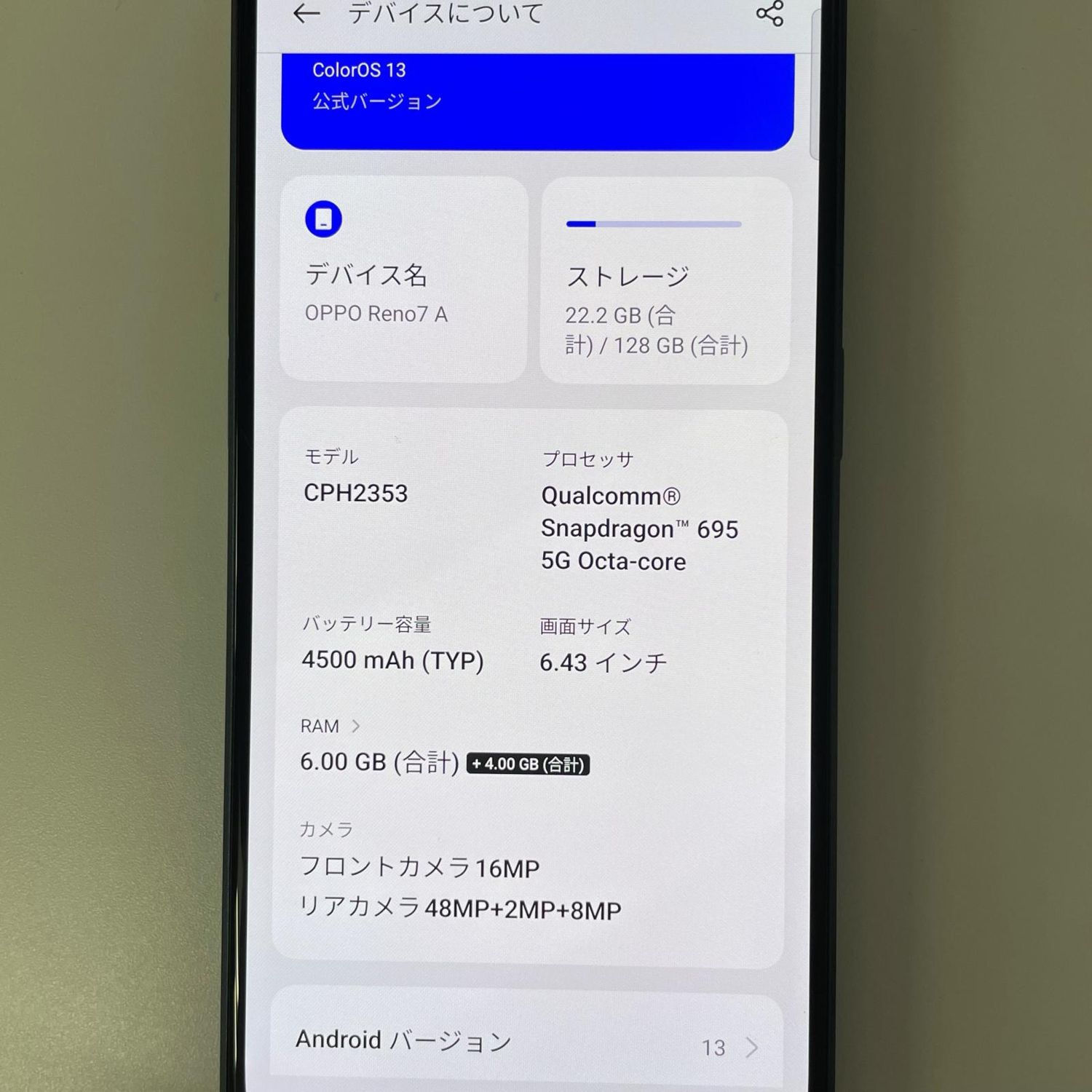 | 機種名 | OPPO Reno7 A |