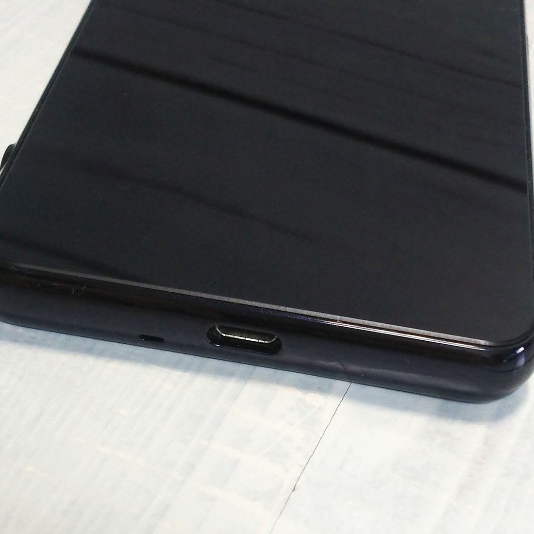 【液晶の状態】薄っすらと赤みがかった色むらと、ボタン部に擦り傷がみられますが、液晶自体は傷や汚れが少なくタッチ操作にも影響はありません。