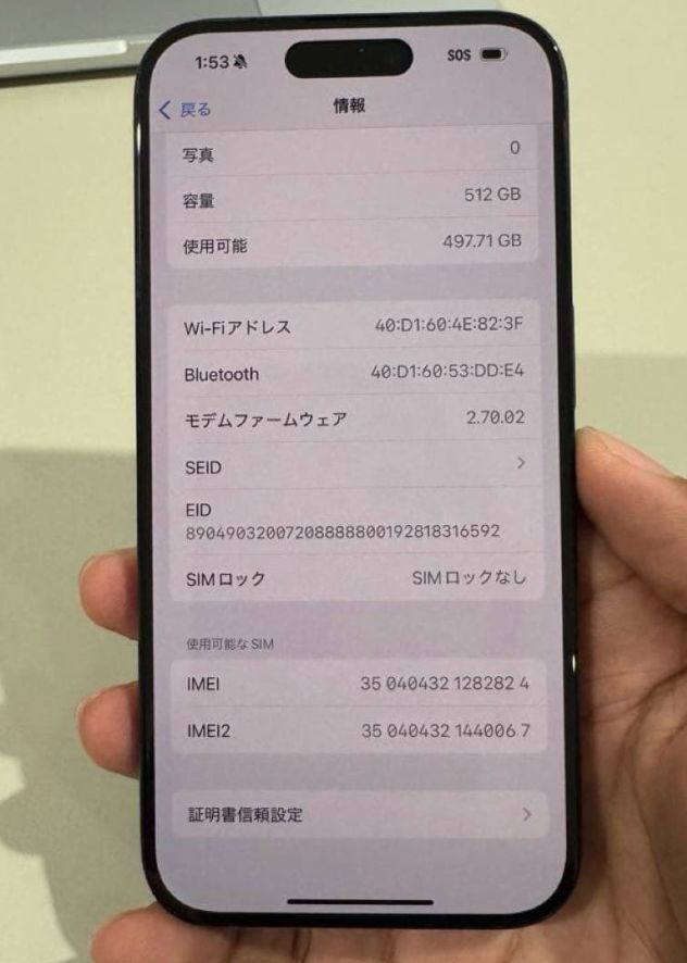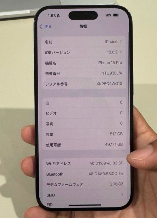 「」機種:iPhone 15 Pro 512GB。