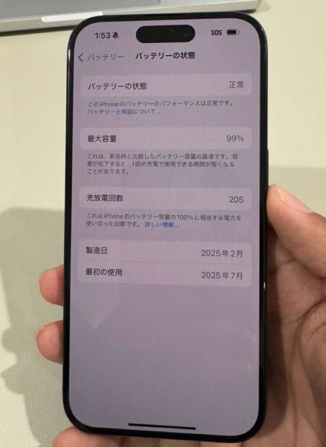 「」最大容量 : 99%。バッテリー純正修理歴なし