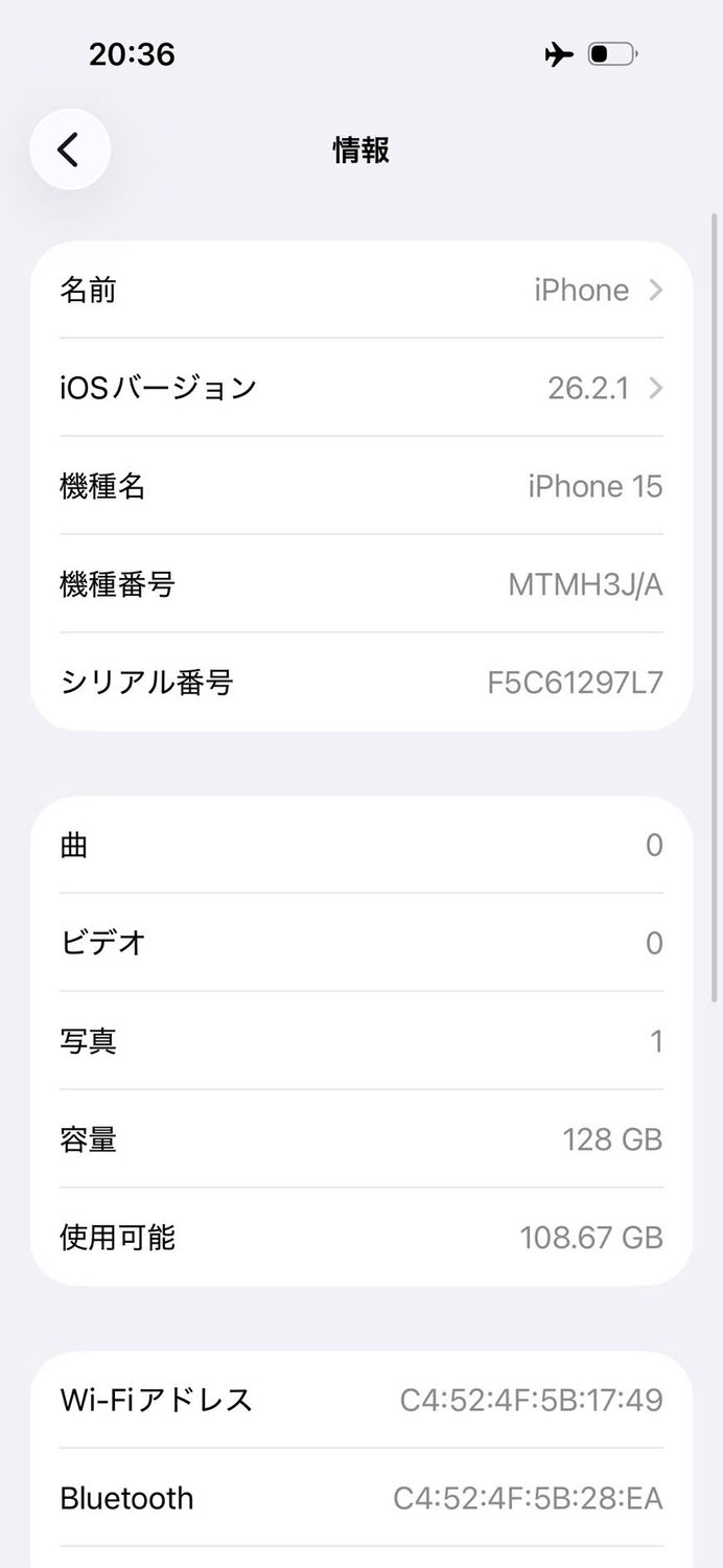 | 機種名 | iPhone15 |