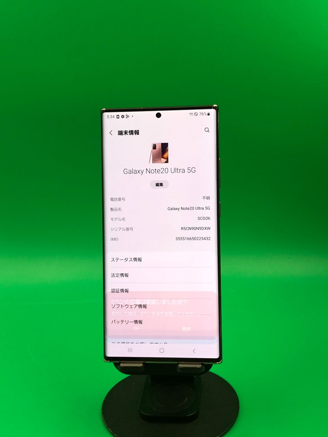 | 機種名 | Galaxy Note20 Ultra 5G |