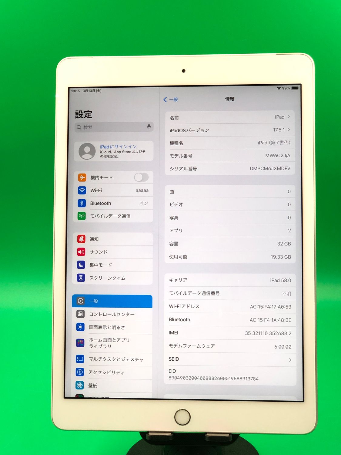 | 機種名 | iPad(第7世代) |