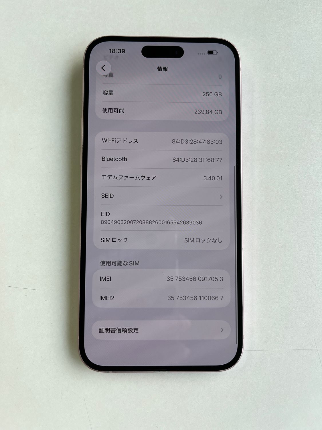 | IMEI番号 | 357534560917053 |