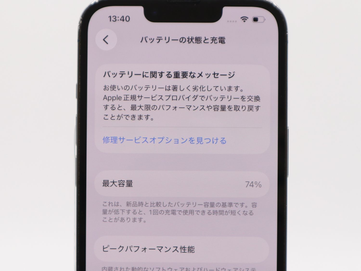 ■バッテリー状態:最大容量100%中74%