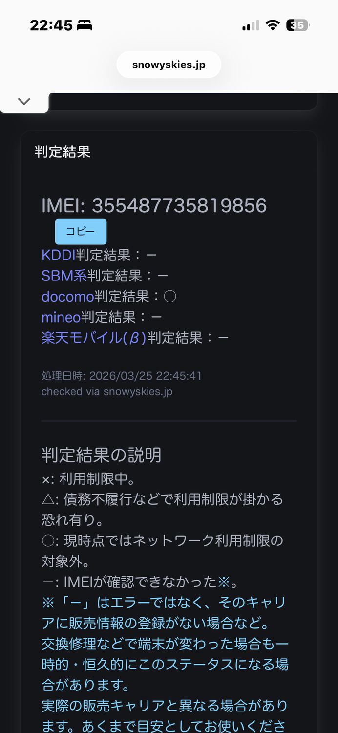 | IMEI番号 | 355487735819856 |