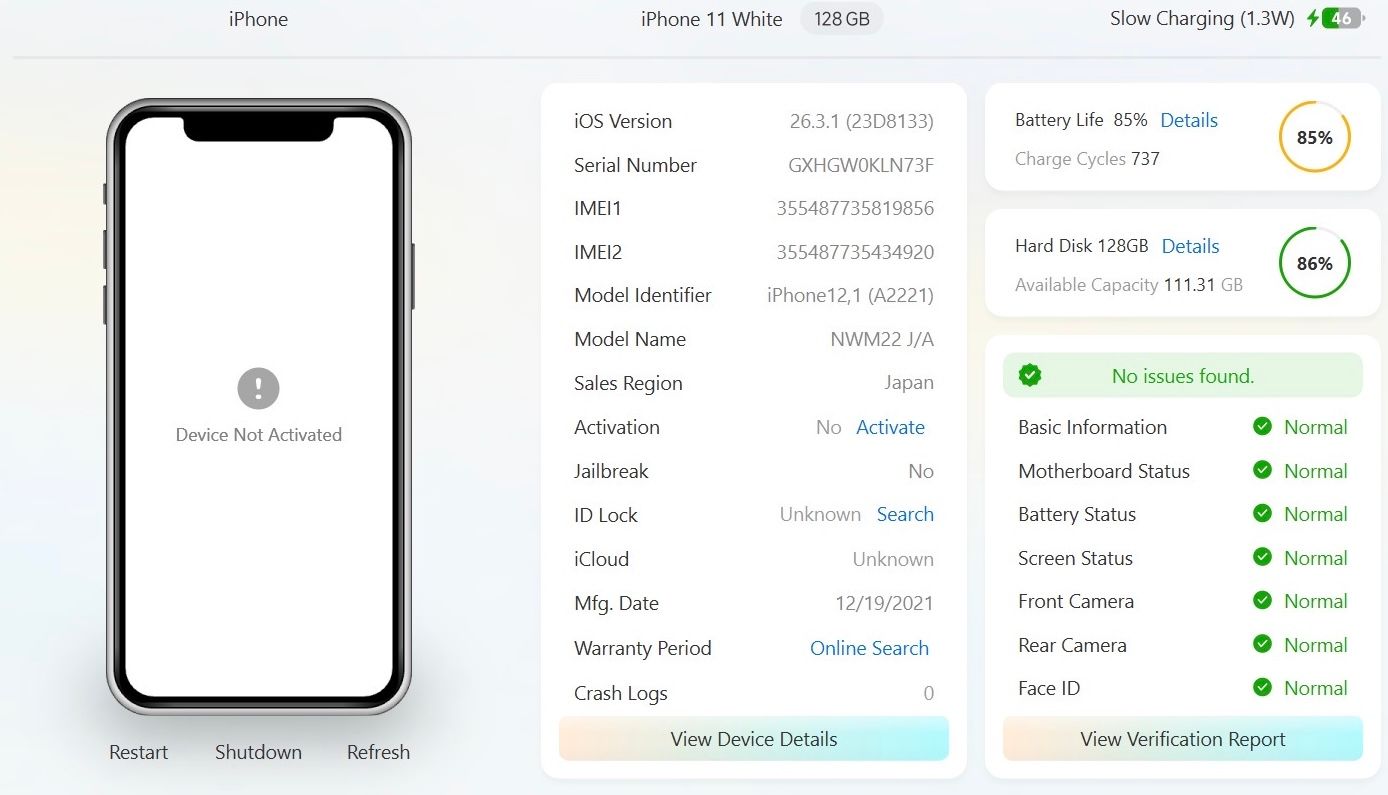 【アクティベーションロック有】iPhone11 White 128GB 画面,背面左下割れ・側面打痕