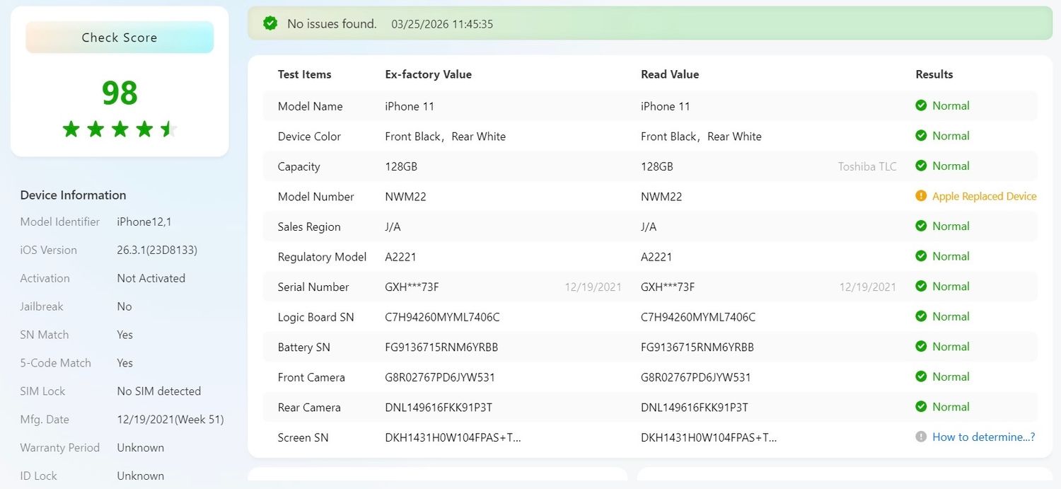 アクティベーションロックが掛かっております。各種機能の動作をツールにて行いましたが、実際に正常に動作するかは確認しておりません。画面割れがあります。中央右端に1ヶ所光漏れも確認できます。