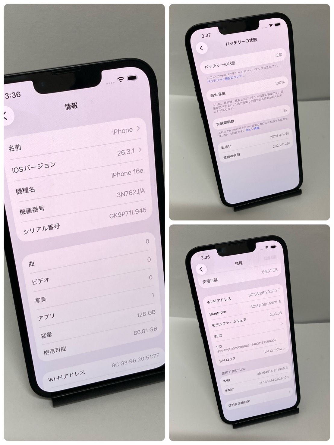 今日発送 デモ機☆iPhone 16e 128GB SIMフリー 電池100%◆全国スピード発送◆8456