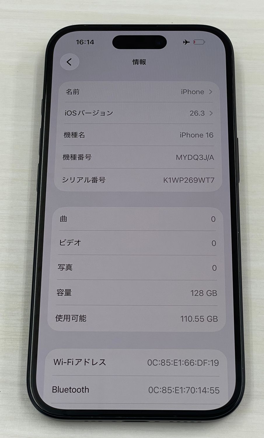 | 機種名 | iPhone16 |